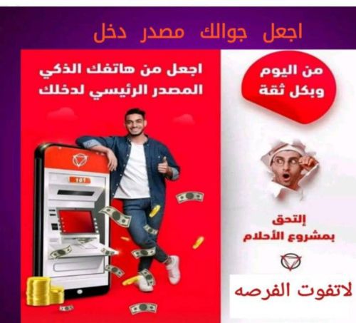 سلام عليكم...العمل عبارة عن تطبيق مشاهدة اعلانات....مابيفتح التطبيق الا برمز قسيمه تفعله ب ٥٠ دولار...بعد التفعيل بيفتح التطبيق لمدة ٥ أشهر ... تشاهد في اليوم ٢٠ اعلان...في الاسبوع ١٤٠ اعلان .. وتحولها لقسيمه وتفعل التطبيق لشخص آخر ب٥٠ دولار....او انتظر العمله الرقميه........يعني ه أشهر بيكون ٢٠ اسبوع يعني ٢٠ قسيمه يعني ١٠٠٠دولار .......وكمان لأنو تعب في البحث عن مشتركين ... بينزلو عملة رقميه في ٢٠٢٦ تحول اعلاناتك لعملات وتسحب ...... وكمان في المزيد.. . للمزيد او الاشتراك التواصل عبر الواتس اب ..+967730068536....رجاءآ للجادين والراغبين فقط....والسلام عليكم ورحمة الله