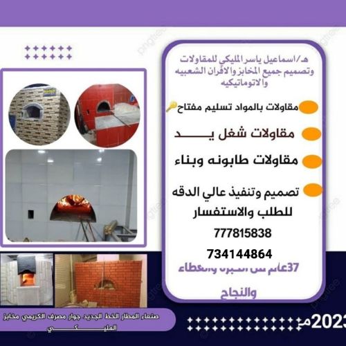 اسماعيل المليكي للمقاولات وتصميم جميع المخا بز والافران بجميع محافضات اليمن #مقاولات مفتاح تسليم معاالموادمقاولات شغل يدمقولات طابونه وبناتصميم تنفيذ خبره ٣٧عام من العطا والنجاحلا الطلب والاستفسار 777815838774404884هذا الفرن تابع للاخ عبد السلام دبوان مديريه بني الحارث صنعاء تم تجهيزه في شهر رمضان وما يتم الاعلان عنه الا بعد العمل به ومع ضما نة اي خلل فني اخوكم اسماعيل ياسر عبد المجيد المليكي صنعا خط المطار الجديد مخبز المليكي جوار مصرف الكريمي
