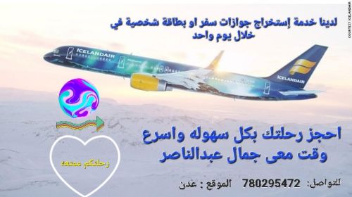 حجز مقعد طيران رحله ذهاب وعوده مـــِْن عدن الى مصر بخلال يوم واحد بسعر 700 دولار للتواصل 780295472