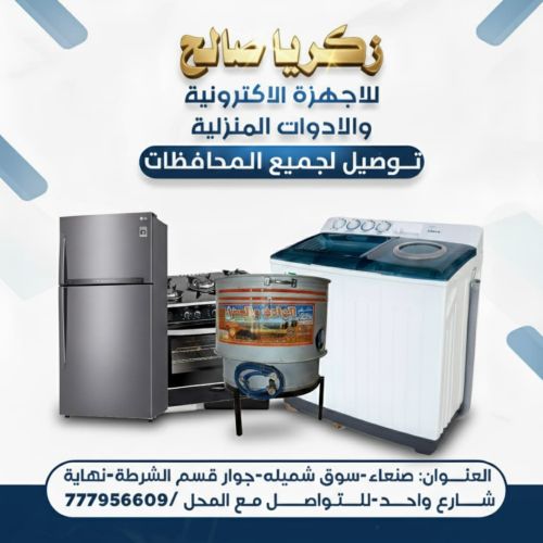 عرض جديد ومغري من محلات زكريا صالح للادوات المنزليه والكترونيات يتكون العرض من #1 خبازه ابو جهتين استيل كامل ضد الصدى والذحل ضمان خمس سنوات بفاتورة رسميه #2 فرامه اللحم والخظار كهربائي 2 لتر استيل من شركه فود العالميه #3 فراده خبز خشب كبير مع العصاء وكل هاذا العرض 30000 الف يمني أو 215 ريال سعودي يوجد لدينا خدمه توصيل داخل صنعاء والمحافظات باسعار مناسبه للتواصل واتس أو اتصال على الرقم التالي 777956609
