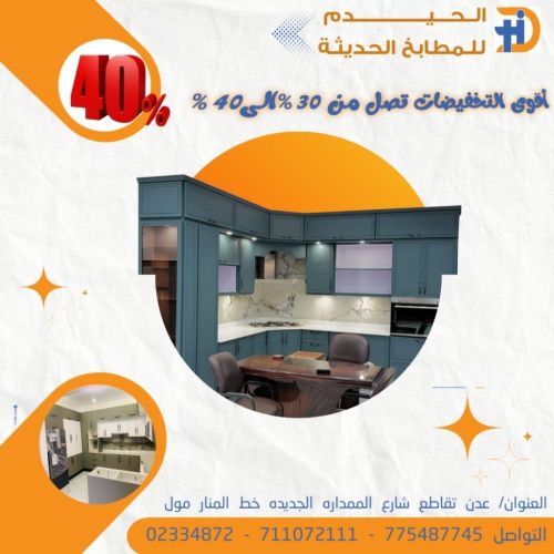 For modern kitchens, the price per square meter is only 490 Saudi riyals. Nothing but very durable and strong kitchens with a 20-year guarantee.