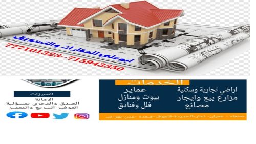 نجم الذهب للخدمات العقاريه والاستثماريه نحن بعون الله نلبي جميع احتياجاتكم للتواصل معانا الاتصال على 773677436king
