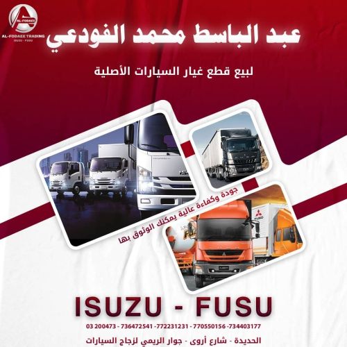 محلات عبد الباسط الفودعي لقطع غيار الشاحنات ايسوزو و ميتسوبيشي فيزو الحديدة شارع اروى جوار الريمي لزجاج