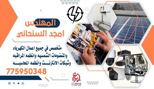 متخصص في جميع اعمال الكهرباء والمنظومات الشمسية الصناعيه والمنزليه وانظمه المراقبه وشبكات المحاسبه