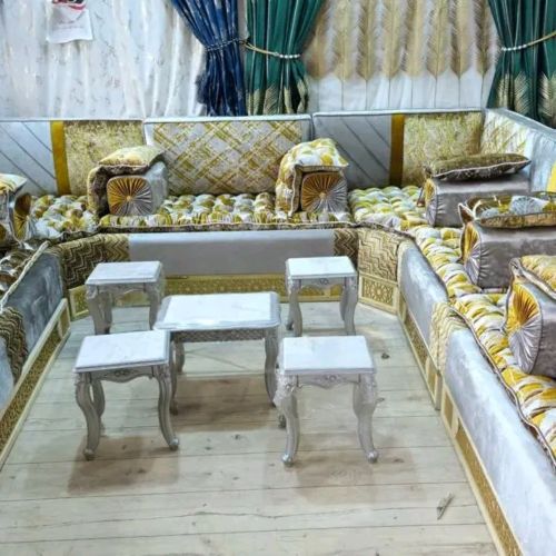 انتيره جاهز 5متر مترين ونص في مترين ونص لون ازرق فاتح ارجل استيل فخامه مع 3مخدات لون ذهبي بسعر 100الف فقط للحجز بعربون لتواصل 770767792
