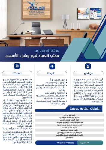 للبيع اسهم في شركة يمن موبايل والاسمنت والالبان والسمن والصابون ومطاحن عدن والاسفنج لمعرفة تفاصيل اكثر عن العدد والسعر التواصل واتساب :