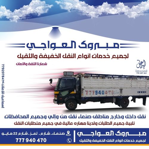 العواجي لخدمات النقل العام نقل اثاث متكامل اسعار منافسه اختار وجهتك والباقي علينا ت/777940470 خدمات نقل متكامله لتواصل /777940470
