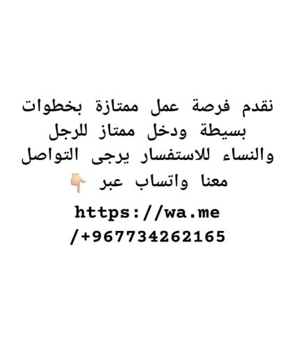 نقدم فرصة عمل عن بعد بخطوات بسيطة ودخل ممتاز للرجل والنساء للاستفسار يرجى التواصل معنا واتساب
